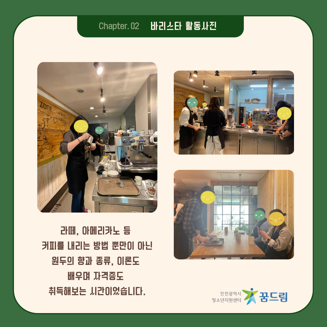 2. 장소 : 국제커피교류협회, 에버그린시티 꽃예술전문학원, 이노스잡, 동인천미용학원