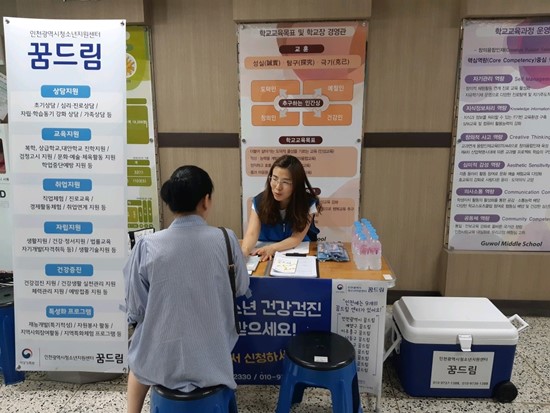 인천광역시청소년지원센터 꿈드림에서는 복지사각지대를 최소화하고, 청소년이 이용하기에 편리한 센터를 안내받을 수 있도록 하여 꿈드림 이용률을 높이기 위해 2018년 제2회 검정고시 응시 청소년과 보호자를 대상으로 꿈드림 사업과 학교 밖 청소년 건강검진 사업을 홍보하였습니다.
