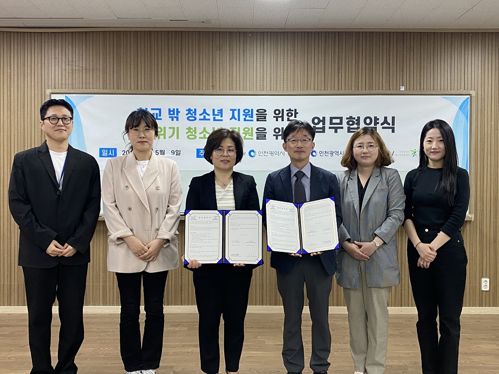 인천광역시학교밖청소년지원센터에서는 인하 위드아이 청소년 진로지원센터와의 업무 협약식을 다음과 같이 진행하였습니다.