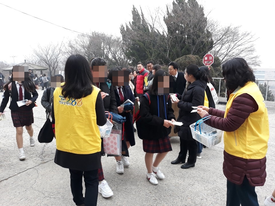 학생등교맞이에서 학생들을 격려하고 학교폭력예방 및 생명사랑 홍보물을 학생들에게 나누는 시간을 가졌습니다.
