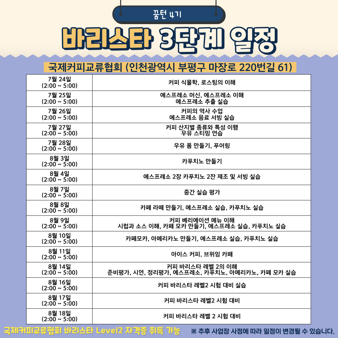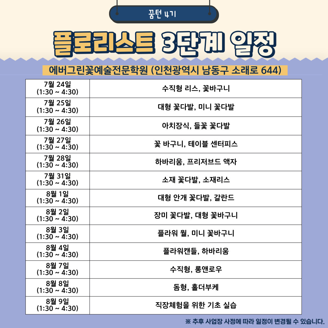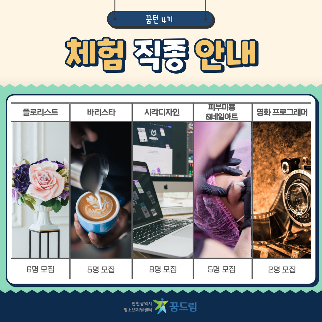 • 참여 직종: 플로리스트(6명), 바리스타(5명), 시각디자인(8명), 피부미용&네일아트(5명), 영화 프로그래머(2명)