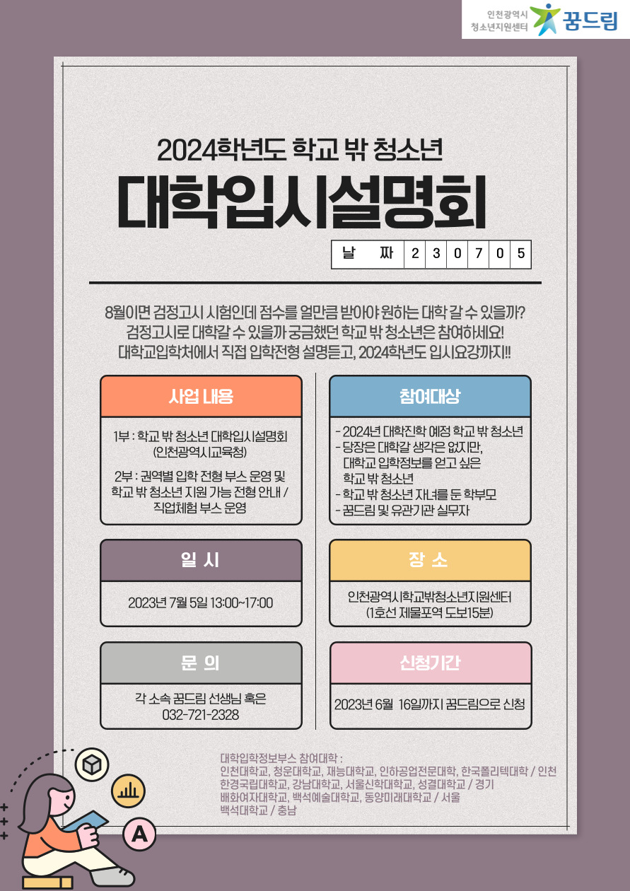 (모집) 대학입시설명회 참여 신청 안내(학교 밖 청소년 대상)