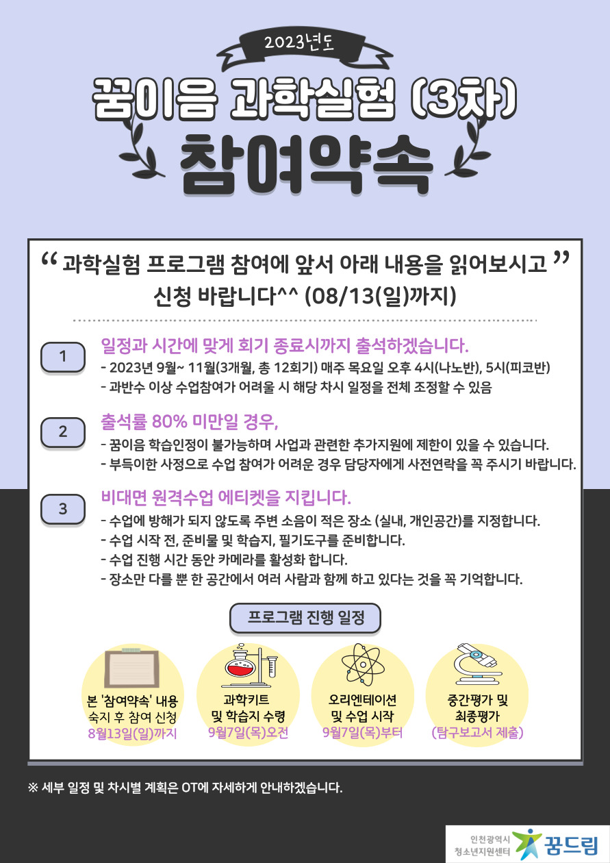 (모집) 2023년 꿈이음 과학교실(3차) 참여자 모집 안내