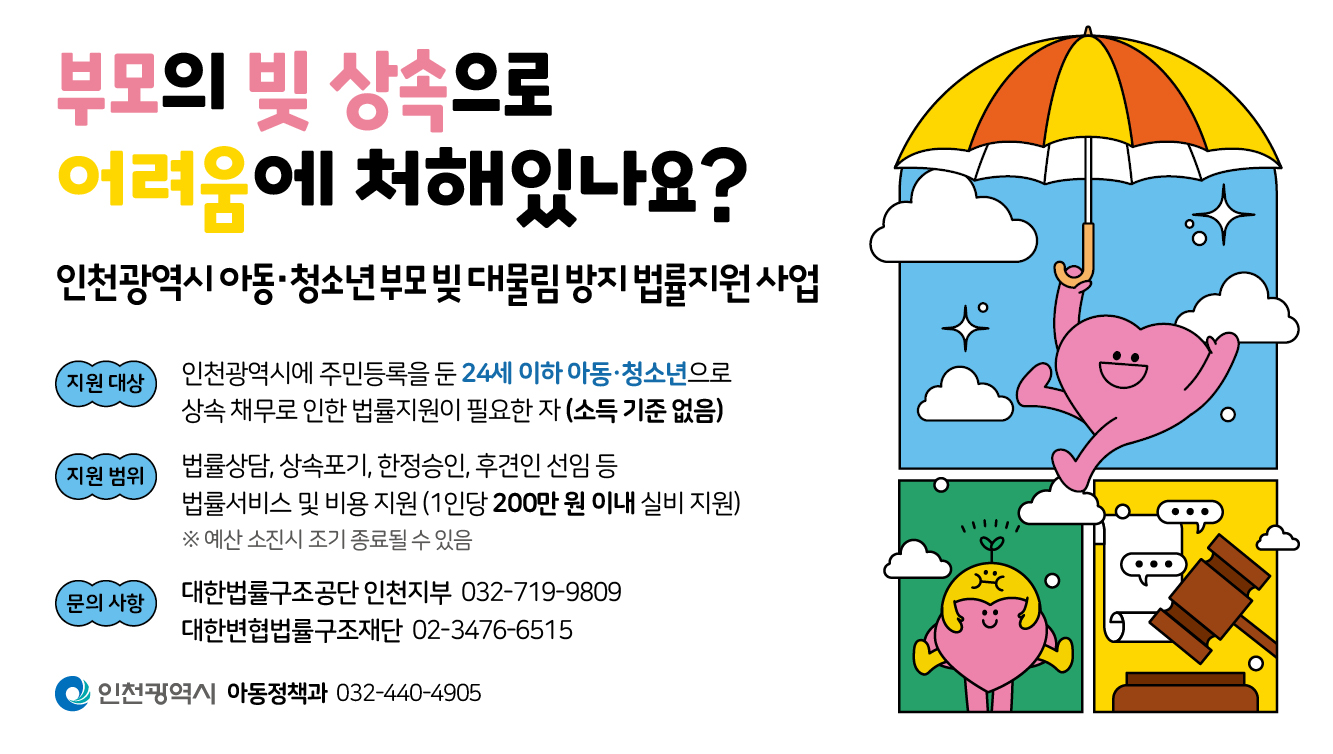 인천시에서는 법률적 지식이 부족한 아동/청소년이 부모의 채무 상속으로 인해 경제적 어려움을 겪지 않도록